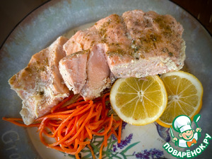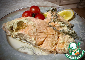 Рыба получилась очень сочная. Вопреки опасениям ничуть не жирная. Сочетание такое … молочной сливочности и рыбьего, но благородного вкуса лосося…